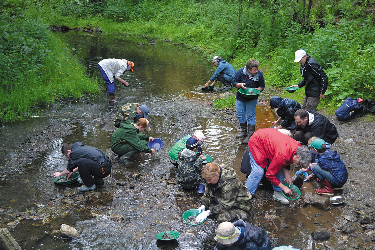 На речке Березовке под руководством потомственного золотодобытчика учились тонкостям промывки шлиха (рис. 8).
