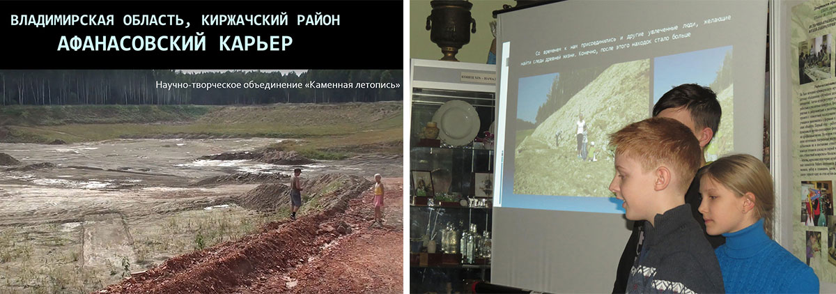 В 2019 году мы с другими учениками объединения «Каменная летопись» подготовили презентацию «Владимирская область, Киржачский район, Афанасовский карьер», с которой выступили на геосеминаре в музее «Звездная летопись». Там шла речь об исследовании ископаемых остатков животных мелового периода.