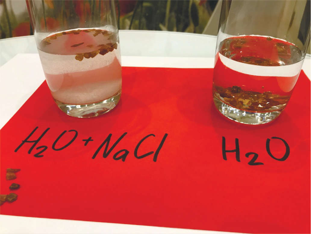 Плотность янтаря примерно равна плотности морской воды. В пресной воде янтарь тонет, в солёной всплывает (при комнатной температуре). Поэтому куски янтаря легко носятся в волнах, не опускаясь на дно. Опытным путём я наглядно убедился, что плотность янтаря больше, чем у пресной воды. Плотность янтаря 1,050-1,096 г/мл, воды – 0,998 г/мл.