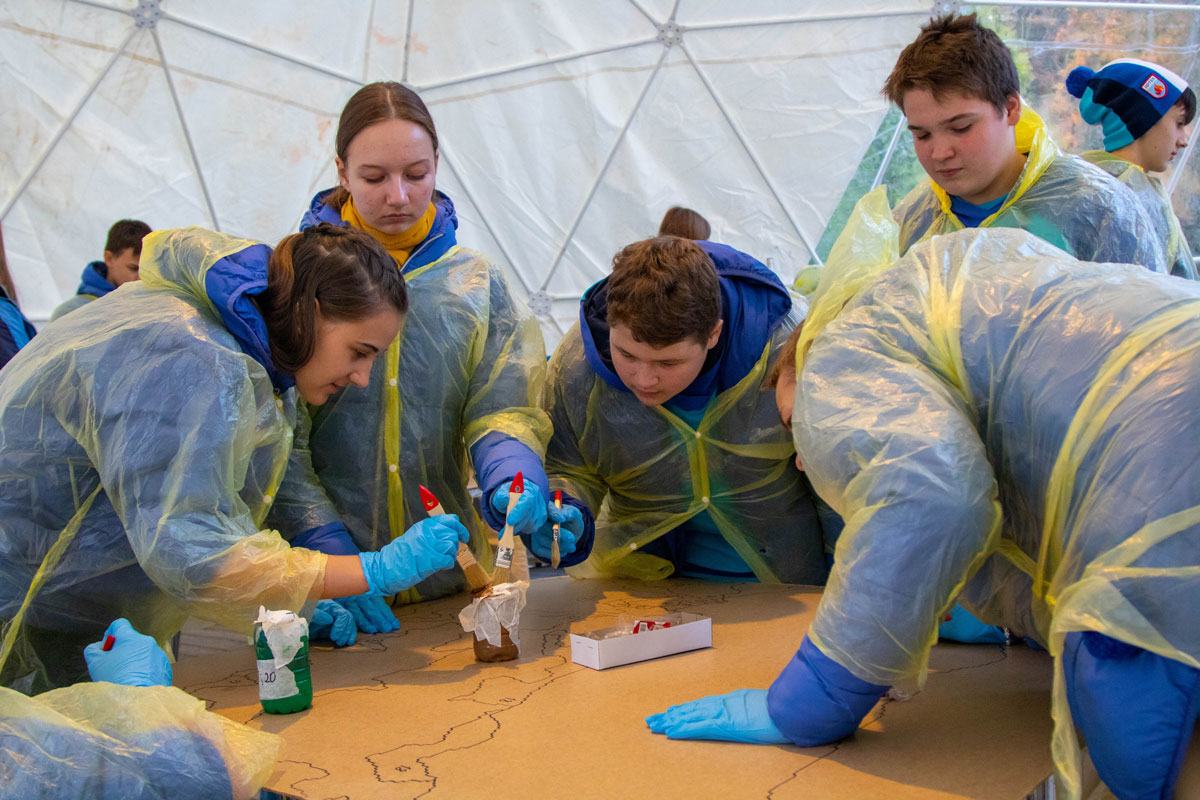 В чем особенность «ГЕОАРТЕКА»? Погружение в реальную профессиональную среду с использованием современных геотехнологий. На территории лагеря «Морской» был организован Полевой лагерь юного геолога с интерактивными тематическими площадками по различным направлениям геологической науки: творческая лаборатория «Минералог-эксперт», практикум по геодезии и картированию, практикум по бурению неглубокой скважины, геофизическая станция, площадка «Гидрогеология», лаборатория 3D-моделирования палеонтологических окаменелостей, экологическая лаборатория. Ребята ознакомились с методами геологических полевых и камеральных исследований, отбора образцов горных пород и минералов, получили навыки работы в экспедиционных условиях, работы с картой и компасом, участвовали в мастер-классах специалистов АО «Росгеология» и Института минералогии, геохимии и кристаллохимии редких металлов.